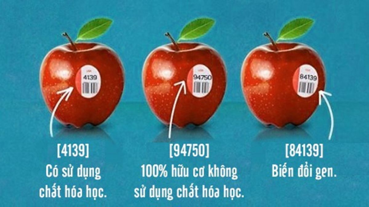 - Nhận biết bằng mã code: Các sản phẩm có nguồn gốc, xuất xứ rõ ràng sẽ có mã code được dán trên sản phẩm. Mã code của thực phẩm biến đổi gen sẽ gồm 5 chữ số và bắt đầu bằng chữ số 8, nếu mã code bắt đầu bằng chữ số 9 hoặc 5 thì sẽ là thực phẩm hữu cơ tự nhiên.