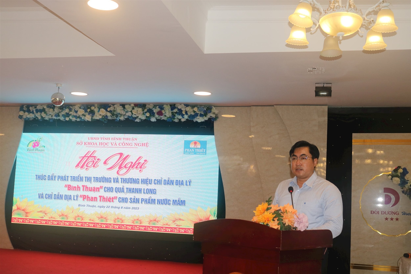 Phát biểu khai mạc hội nghị, ông Nguyễn Hoài Trung, Phó Giám đốc Sở Khoa học & Công nghệ tỉnh Bình Thuận nhấn mạnh: Nhãn hiệu “Bình Thuận Dragon Fruit, hình” đã được bảo hộ tại 13 nước tại Liên minh châu Âu (EU) và Nhật Bản, cùng đó bảo hộ nhãn hiệu “PHAN THIẾT NƯỚC MẮM – FISHSAUCE & hình” tại 3 nước: Hoa Kỳ, Thái Lan và Campuchia. Toàn tỉnh cũng đã có 38 nhãn hiệu cộng đồng được bảo hộ sở hữu trí tuệ, gồm 30 nhãn hiệu tập thể và 8 nhãn hiệu chứng nhận; cùng 76 sản phẩm đạt sao OCOP. Đây là những thương hiệu được người tiêu dùng trong, ngoài nước ưa chuộng, thuận tiện cho phát triển thị trường, mở rộng sản xuất kinh doanh.