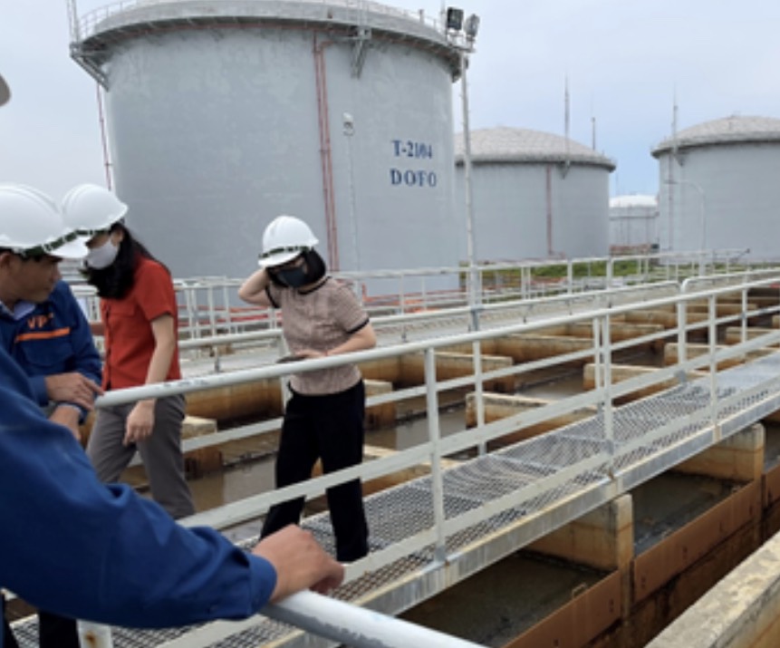 Nhóm tác giả thử nghiệm chế phẩm vi sinh tạo màng sinh học trên chất mang than sinh học từ trấu để xử lý ô nhiễm ở một kho xăng dầu. Nguồn: VAST