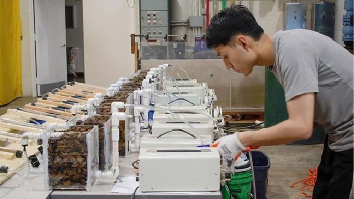 Các nhà nghiên cứu tại Đại học Illinois Urbana-Champaign đã chế tạo được một hệ thống đơn giản sử dụng dăm gỗ và một ít mùn cưa đã qua xử lý để làm giảm đáng kể nitơ, phốt pho và nhiều loại thuốc phổ biến trong nước thải.