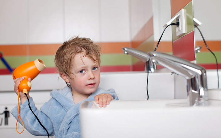 Dùng đồ điện trong nhà tắm hoặc nhà vệ sinh