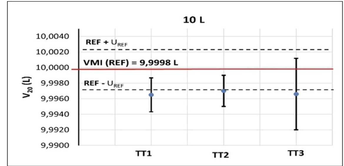 Hình 2. Lĩnh vực dung tích – kết quả hiệu chuẩn bình chuẩn 10 l.