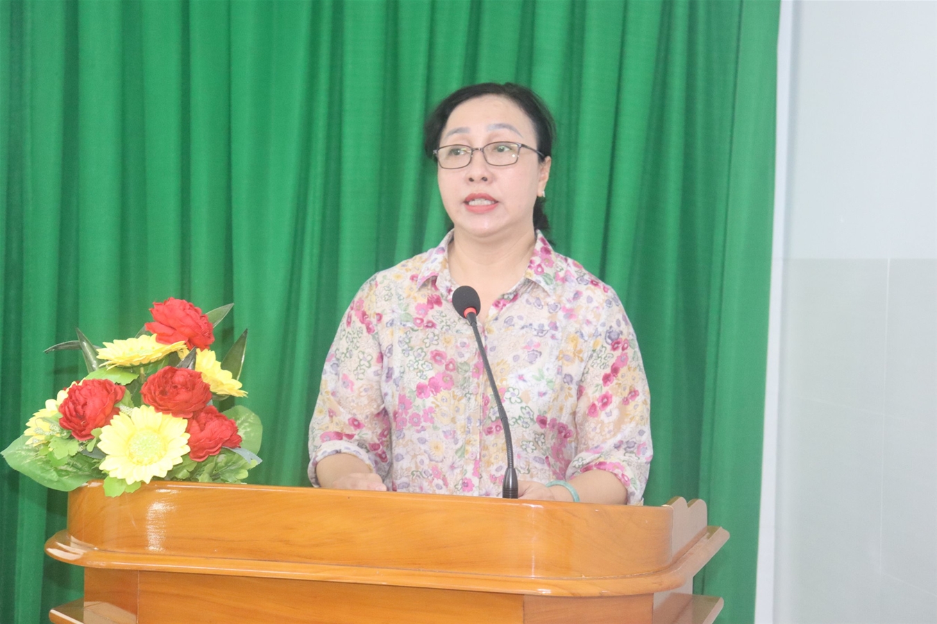 Bà Mai Thanh Nga - Phó Giám đốc Sở Khoa học và Công nghệ phát biểu khai mạc hội nghị.
