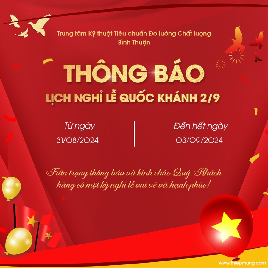 THÔNG BÁO LỊCH NGHỈ LỄ QUỐC KHÁNH 2/9/2024
