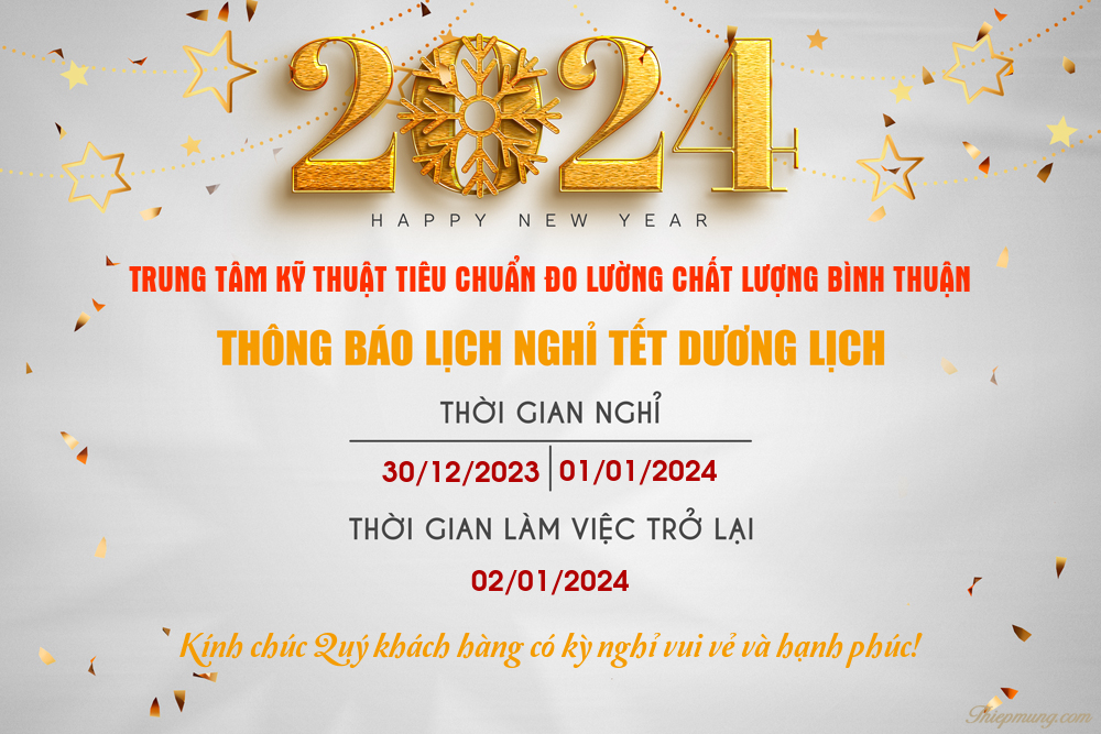 Trung tâm Kỹ thuật Tiêu chuẩn Đo lường Chất lượng Bình Thuận Trân trọng thông báo lịch nghỉ Tết Dương lịch 2024 như sau: