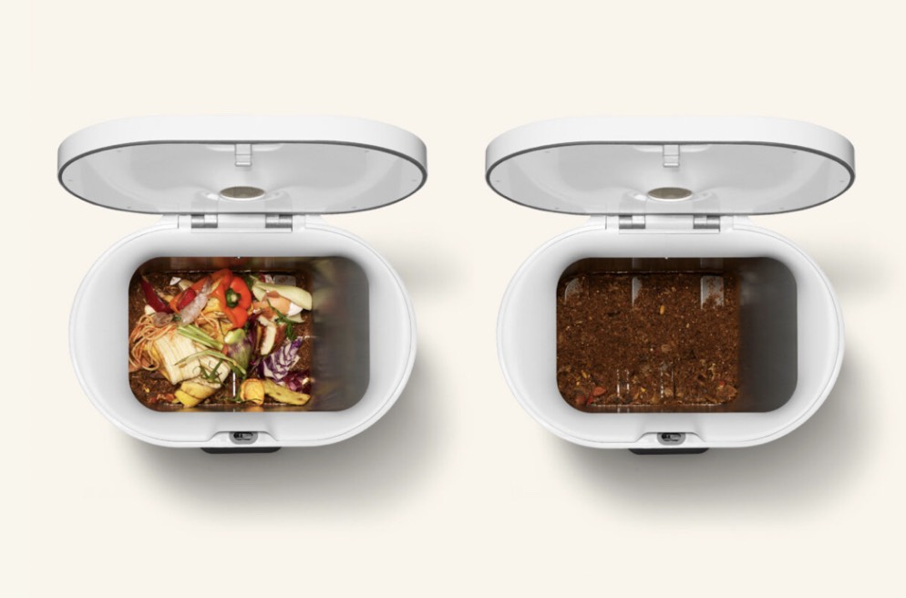 Thùng rác thực phẩm do Mill sản xuất có khả năng biến thức ăn thừa thành bã khô màu nâu,