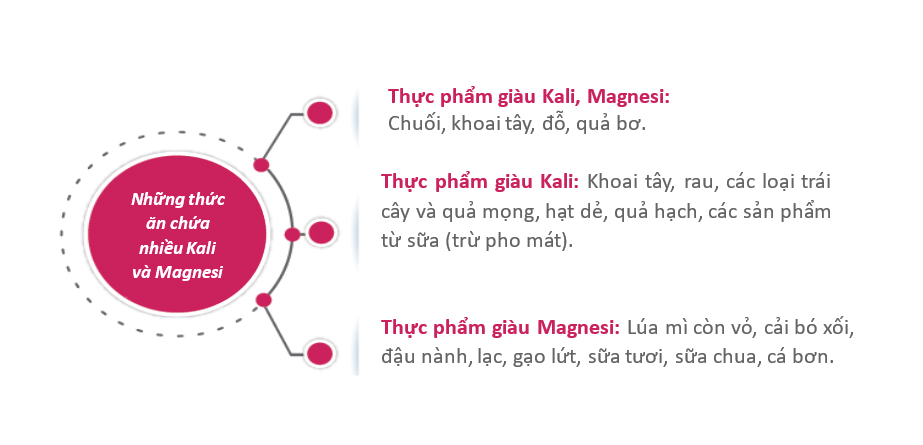 Bạn có thể tham khảo ý kiến bác sĩ, dược sĩ và tìm hiểu kĩ thông tin về các sản phẩm hỗ trợ bổ sung Kali và Magnesi để đạt được hiệu quả tốt cho sức khoẻ.