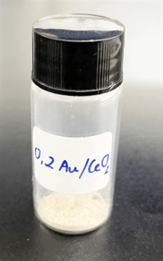 Để điều chế chất xúc tác nano vàng AuNPs, nhóm sử dụng chất mang CeO2 trộn cùng dung dịch HAuCl4, sau đó đánh siêu âm trong vòng 10 phút, để HAuCl4 phân tán đều vào bên trong lỗ xốp và mao quản của chất mang. Tiếp tục cho dịch chiết vỏ bưởi vào hỗn hợp này đánh siêu âm trong 10 phút, sau đó khuấy từ gia nhiệt ở nhiệt độ 55oC. Để hỗn hợp nguội và ổn định rồi đem ly tâm và rửa đến độ pH7, sấy khô ở nhiệt độ 60oC trong vòng 24 giờ, thu được chất xúc tác.