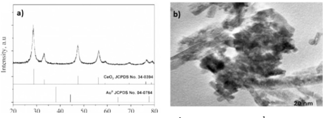 AuNPs sau khi tổng hợp có dạng hình cầu với kích thước khoảng 5-8nm. Các thanh nano CeO2 với chiều dài 33.1±15.0nm và chiều rộng là 7.1±2.1nm.